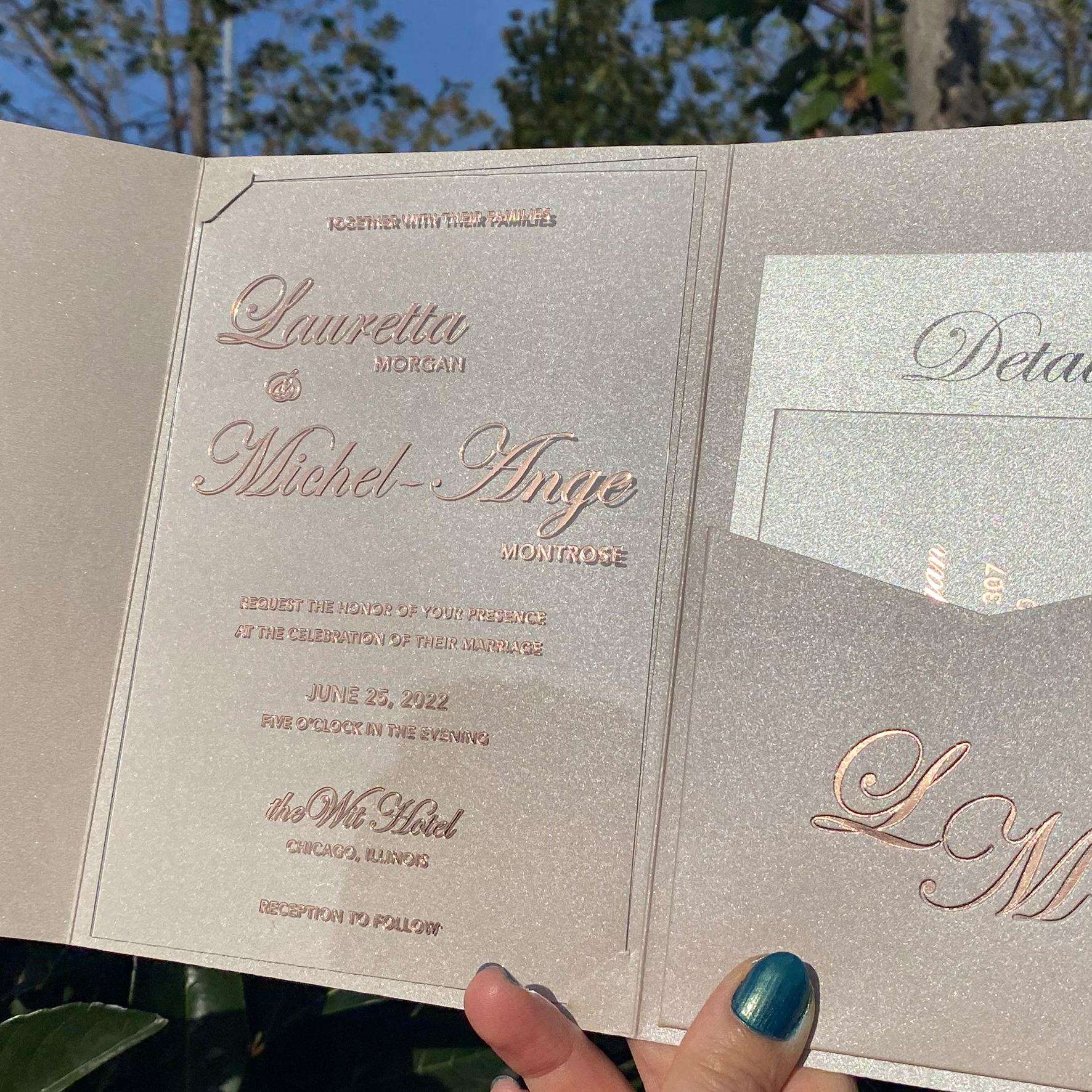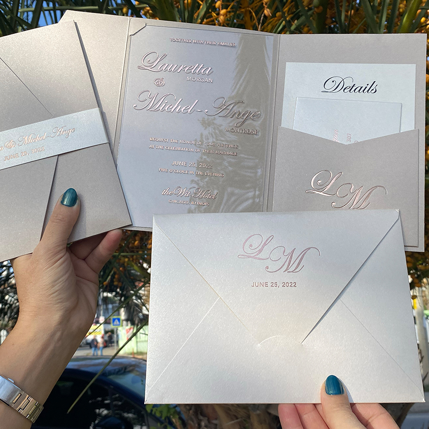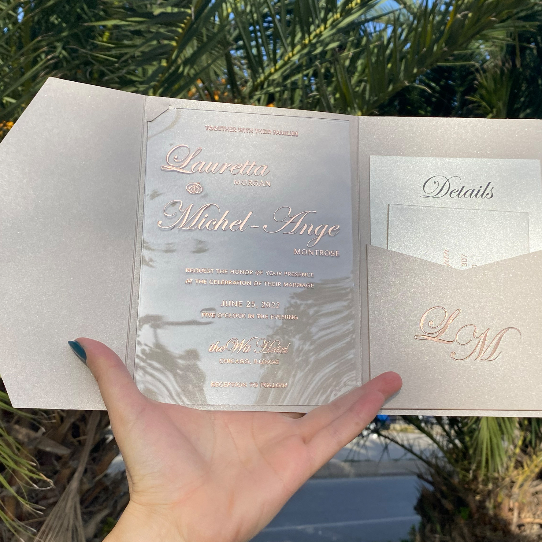 Acrylic Invitation. Pearl Pocket Envelope. Wedding Invitation. Detail Card. Mailing envelope.