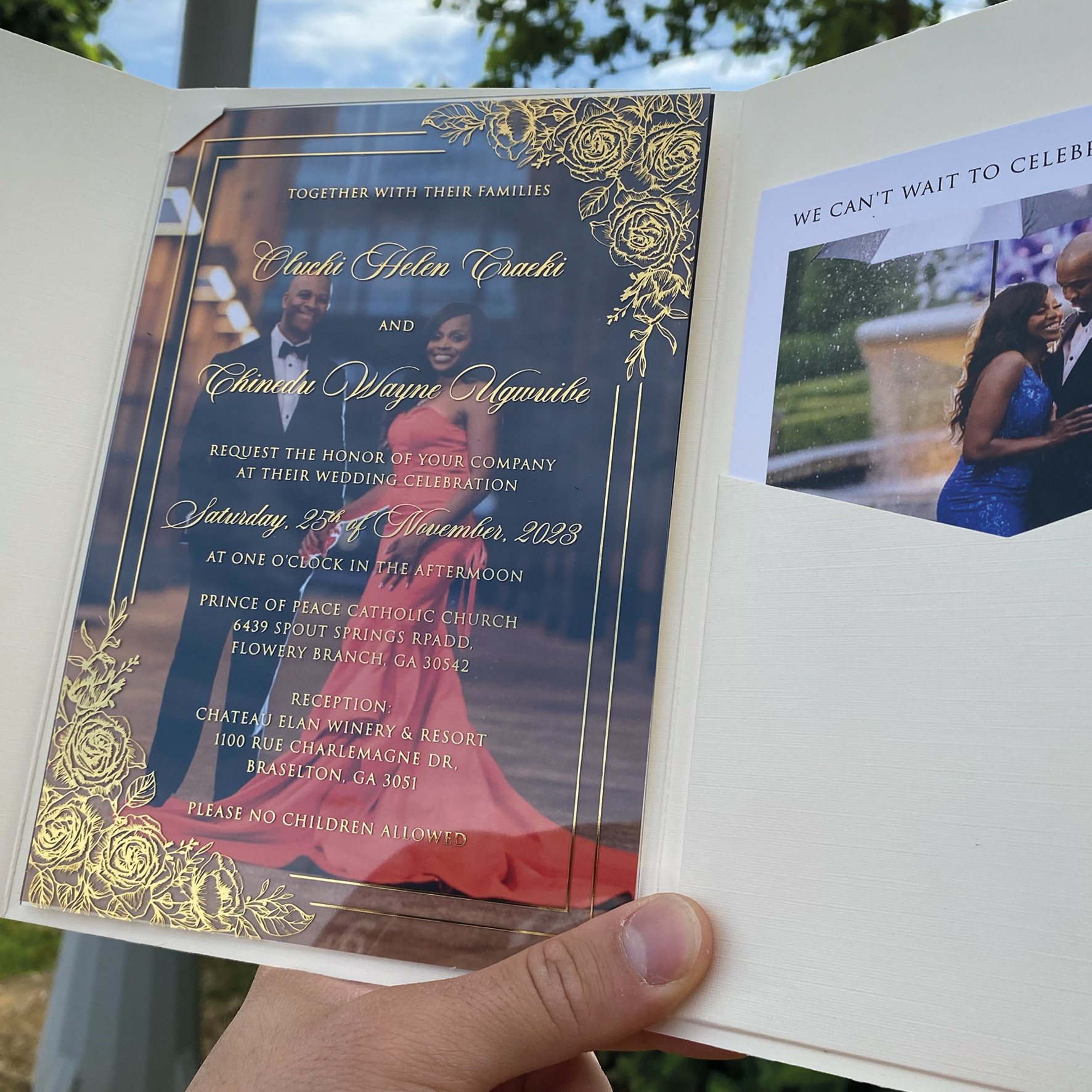 Acrylic wedding invitation, Wedding invitation with photo card, Invitation with photo, Wedding invitation, Pocket envelope, Detail card, Gold wax seal, Mailing envelope, full set