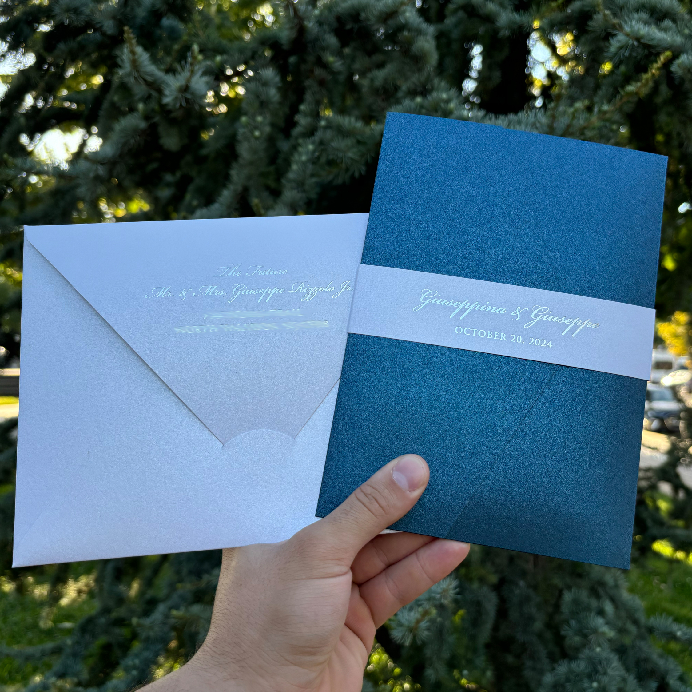 - Blue pearl envelope with pocket (Envelope color can be changed)